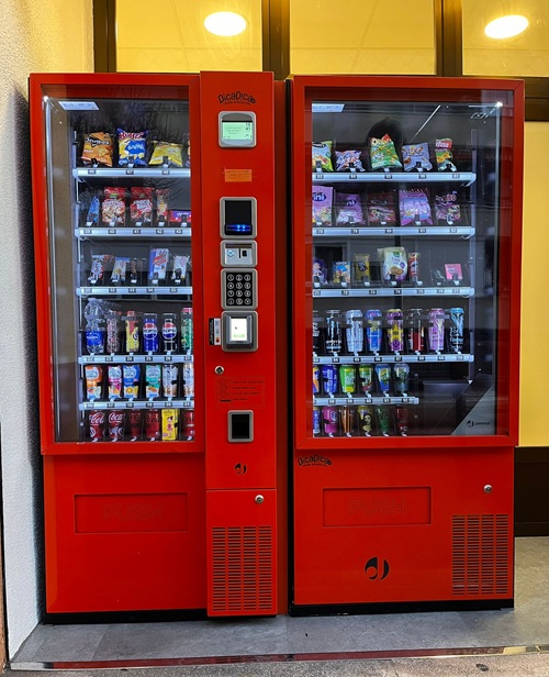 Zona office con frigorífico, botellero, congelador, microondas, cafetera